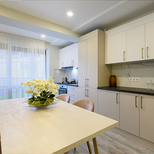L'alloggio dispone di un ampio balcone per trascorrere le tue ore di relax o per piacevoli conversazioni, due camere matrimoniali, sala e cucina attrezzata, arredato con gusto e con particolare attenzione ai dettagli. A richiesta si può aggiungere altro lettino o culla e offrire varie soluzioni anche per neonati.